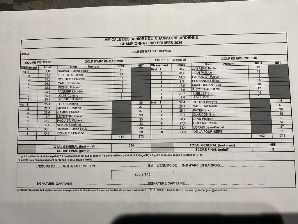 Le verdict est tombé, et on a pris une salve d’artillerie lourde : Mourmelon bat Arc-en-Barrois 3 à 0. Visiblement, ils avaient réglé les mires avant notre arrivée.